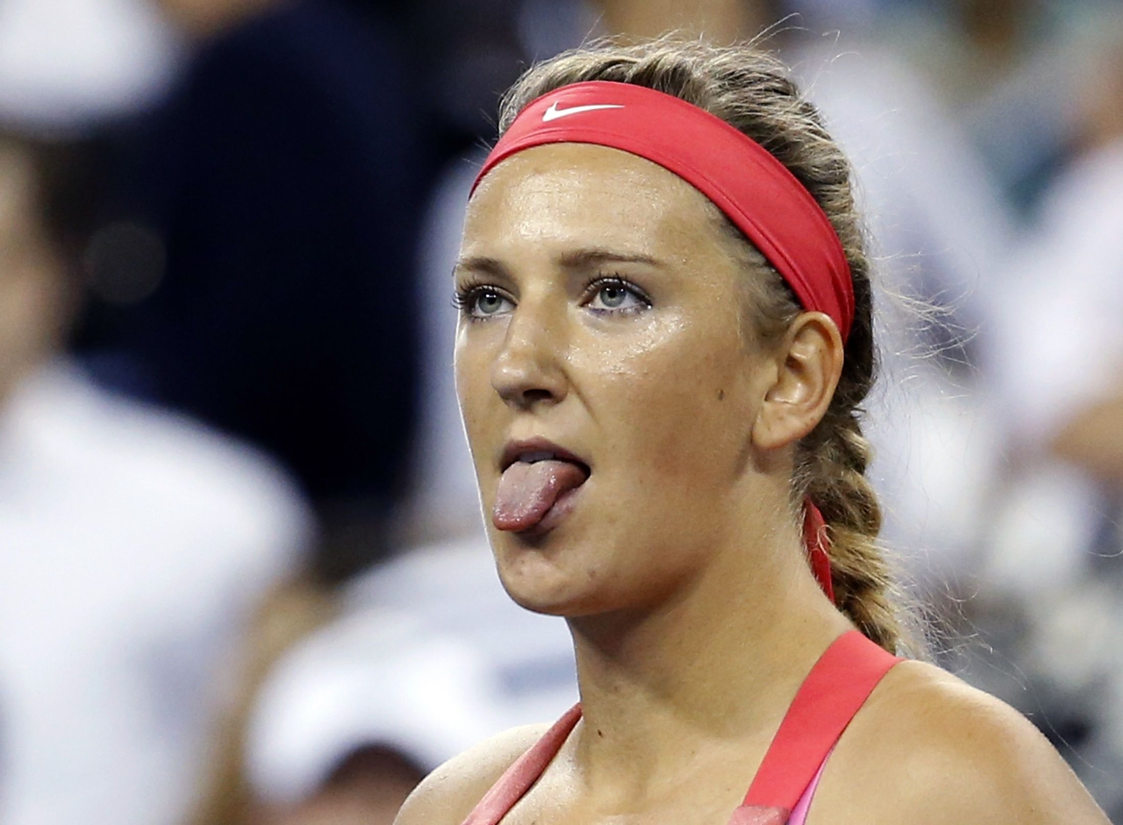 4 сентября. Белорусская теннисистка Виктория Азаренко показывает язык то ли своей сопернице Даниэле Хантуховой, то ли болельщикам, то ли сама себе.