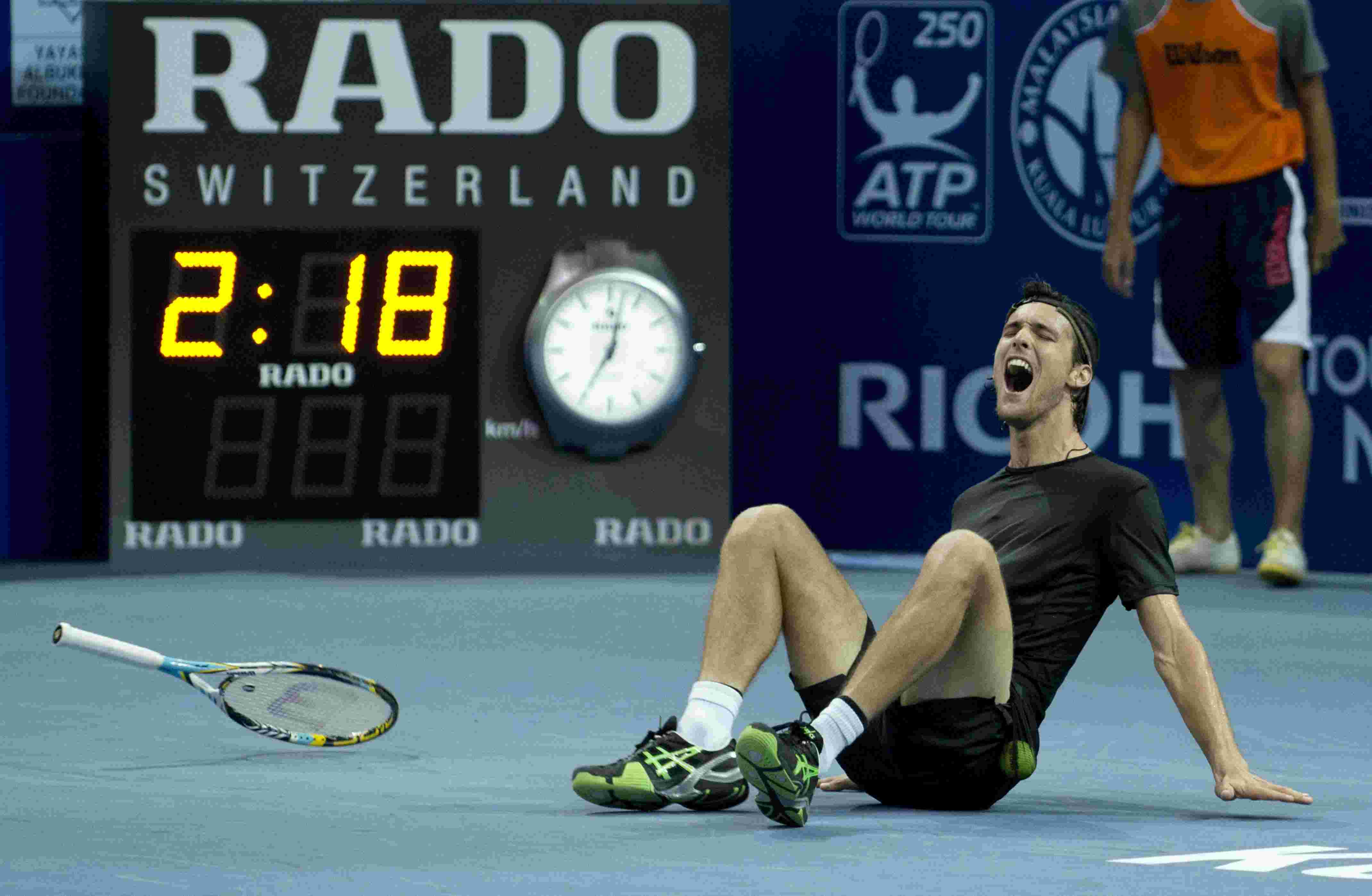 В календаре ATP World Tour главные турниры еще впереди, а на прошлой неделе представители второго эшелона мировой элиты разминались на крытых кортах Юго-Восточной Азии. В Куала-Лумпуре на Открытом чемпионате Малайзии (984 300 долларов) неожиданно для многих отличился 77-я ракетка мира португалец Жоао Соуза. 24-летний профессионал, тренирующийся в Барселоне, отменно выглядел неделей раньше в Санкт-Петербурге, где дошел до полуфинала. Тот успех помог ему заработать специальное приглашение от ATP World Tour в основную сетку Malaysian Open и обрести весьма крепкую уверенность в своих силах. В четвертьфинале Соуза разобрался с "посеянным" под 1-м номером испанцем Давидом Феррером, после чего последовали победы над австрийцем Юргеном Мельцером (4) и французом Жюльеном Беннето (5) – 2:6, 7:5, 6:4. Это первый титул ATP в истории португальского тенниса, к тому же завоеванный после отыгранного матчбола в 10-м гейме второго сета. Теперь будем ждать ответа на вопрос – знаменует ли первый триумф Соузы начало его серьезного прорыва наверх или это был всего лишь случайный всплеск?