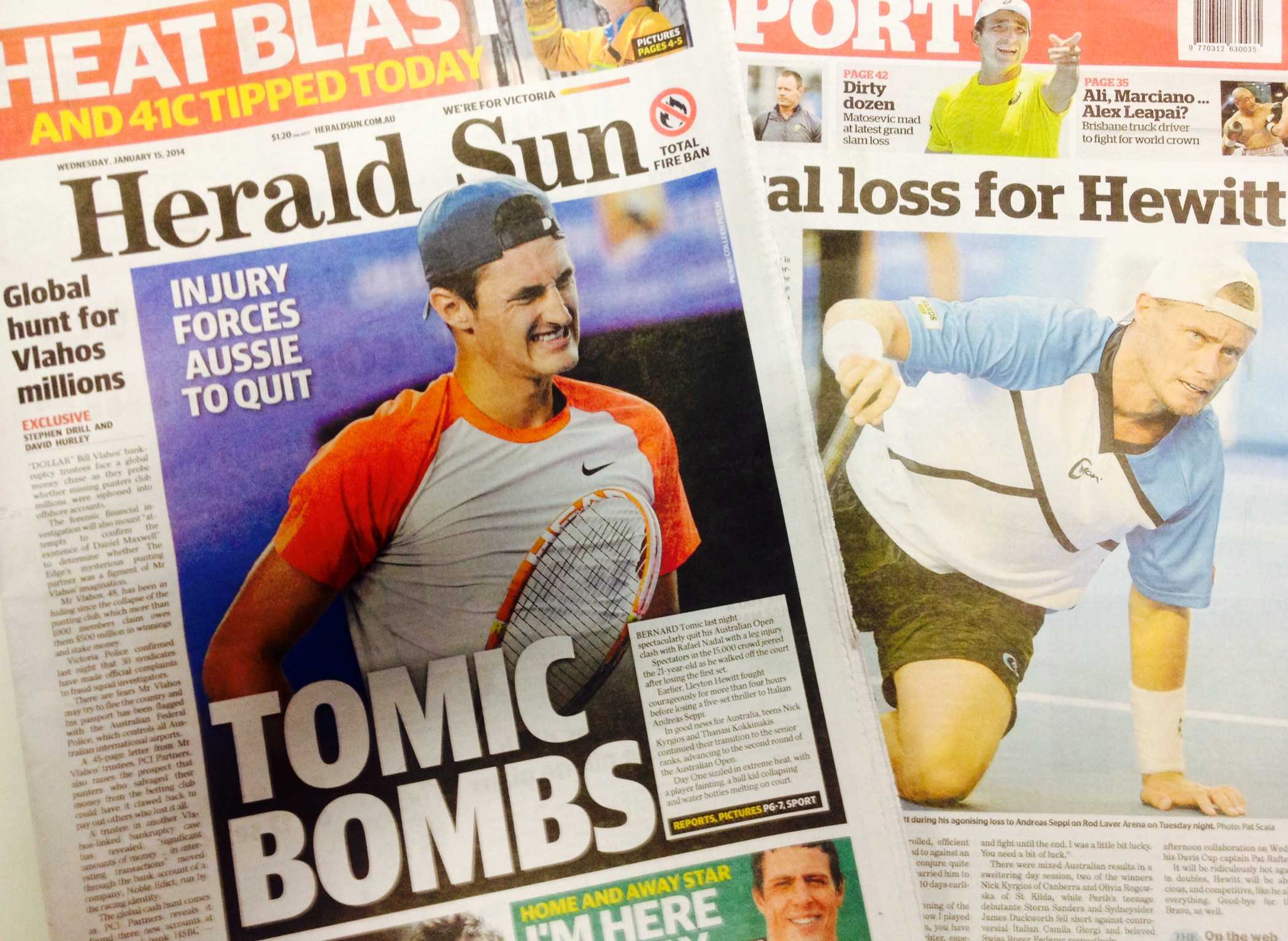 Австралия сегодня в печали. Две их надежды - Бернард Томич и Ллейтон Хьюитт, накануне покинули турнир.