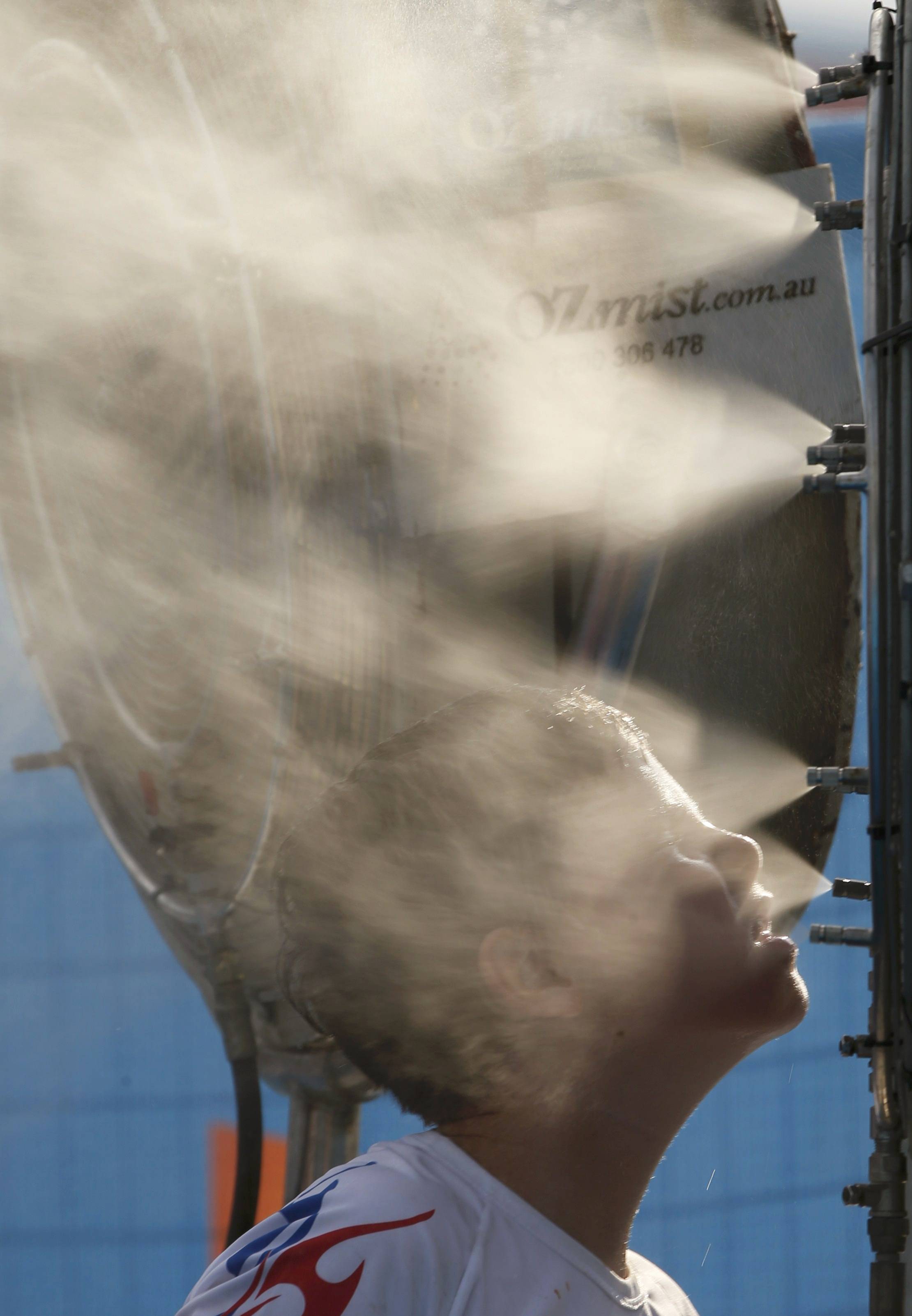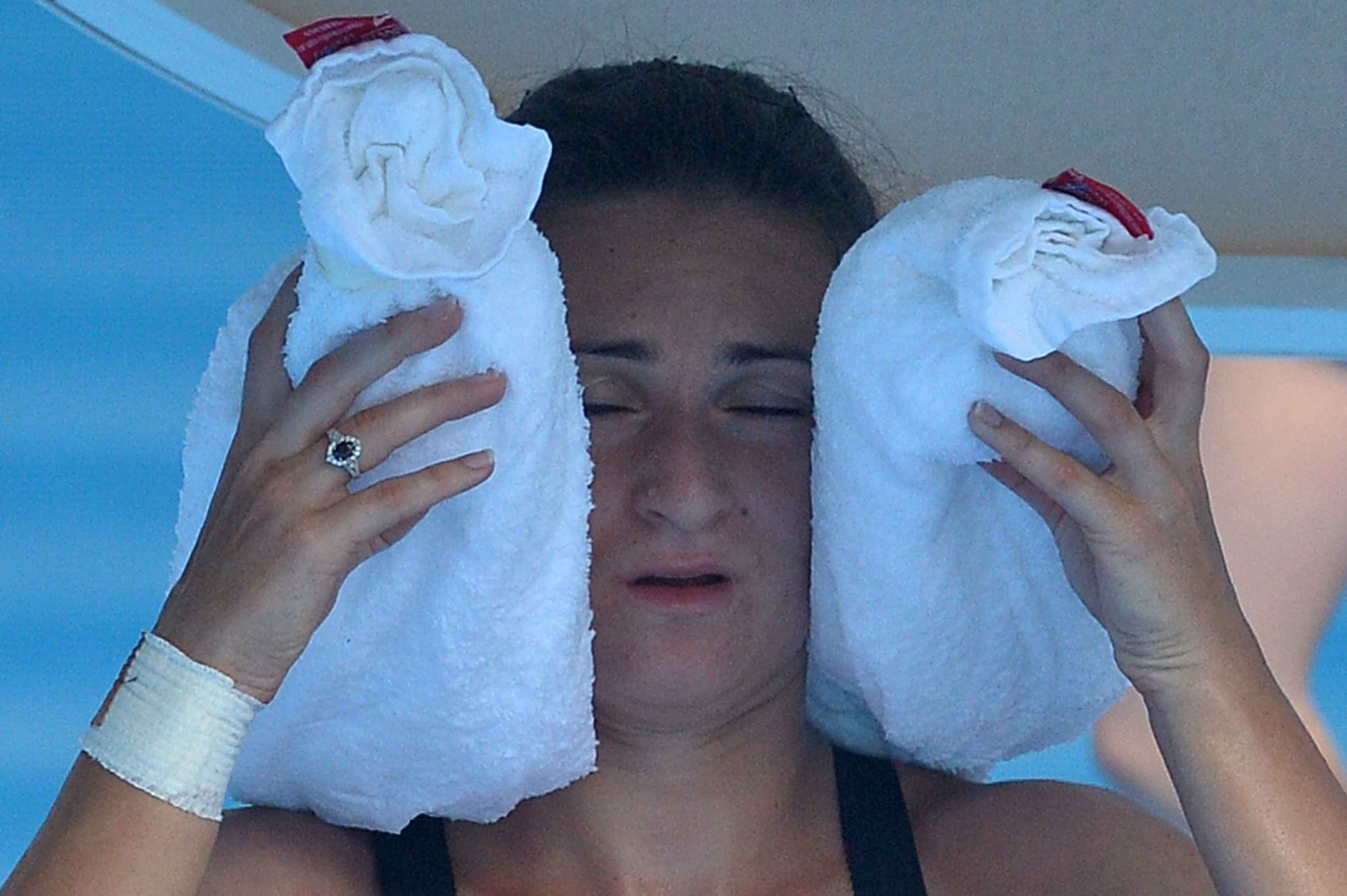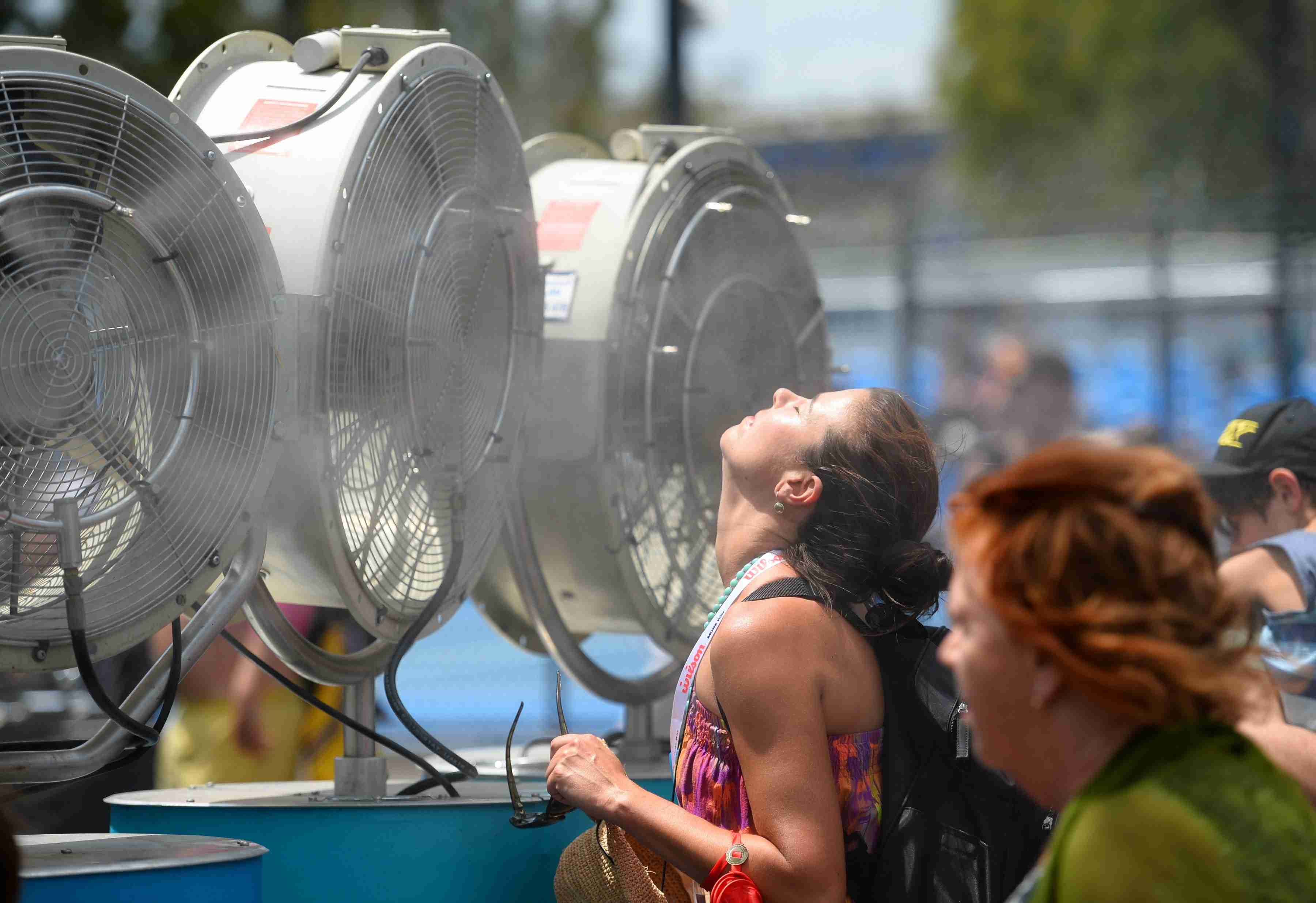 Болельщики и сами теннисисты спасаются от невыносимой жары всеми возможными способами.