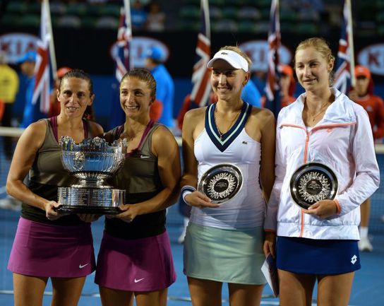 Екатерина Макарова и Елена Веснина не сумели выиграть свой второй совместный титул на турнирах "Большого шлема", проиграв за 2 часа 6 минут итальянкам Саре Эррани и Роберте Винчи – 4:6, 6:3, 5:7. Таким образом, россиянки не смогли подняться на первые два места в мировом парном рейтинге.