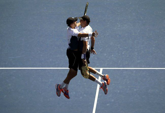 Американские братья-близнецы Боб и Майк Брайаны, не выигравшие в этом сезоне ни одного турнира "Большого шлема", вышли в финал, переиграв соотечественников Скотта Липски и Раджива Рама (6:4, 4:6, 6:3). Если в воскресенье они смогут одержать победу в финале, установят рекорд по числу побед на US Open в парном разряде, а также завоют свой юбилейный, 100-й титул.