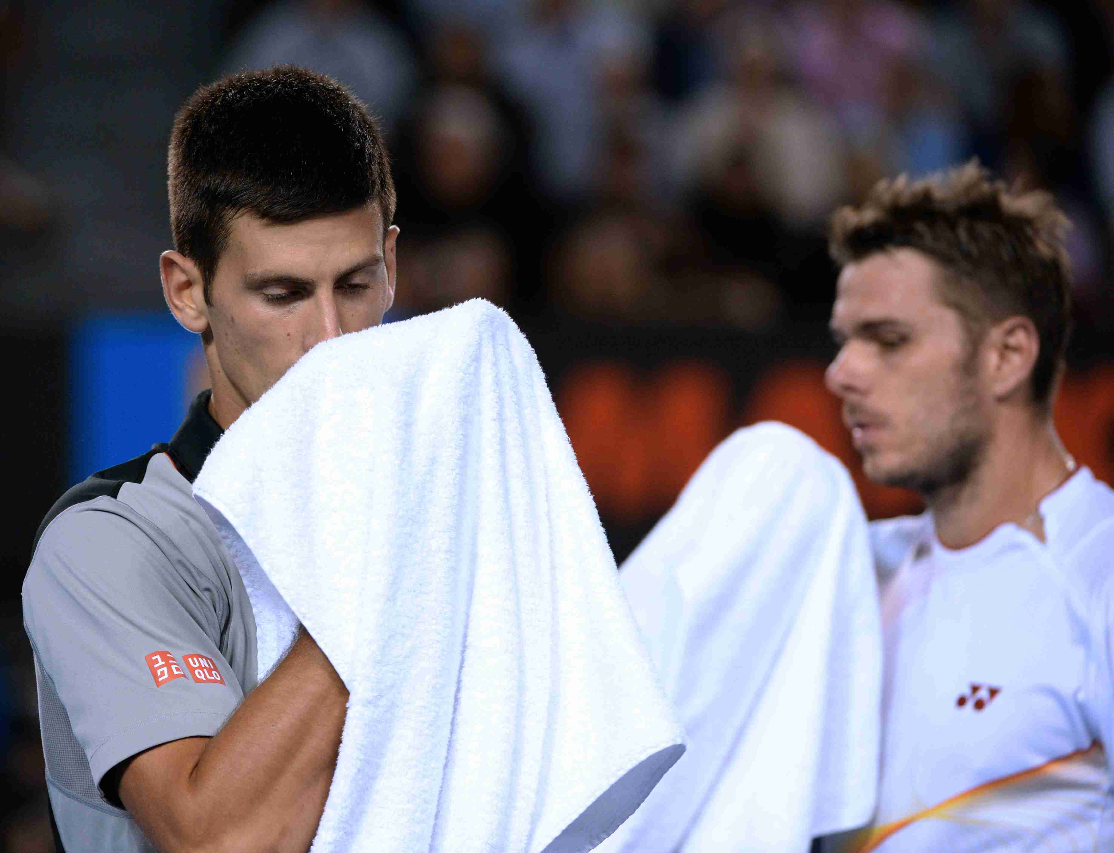 21 января. Мельбурн. Новак ДЖОКОВИЧ (слева) и Стэн ВАВРИНКА во время четвертьфинала Australian Open. Фото - AFP