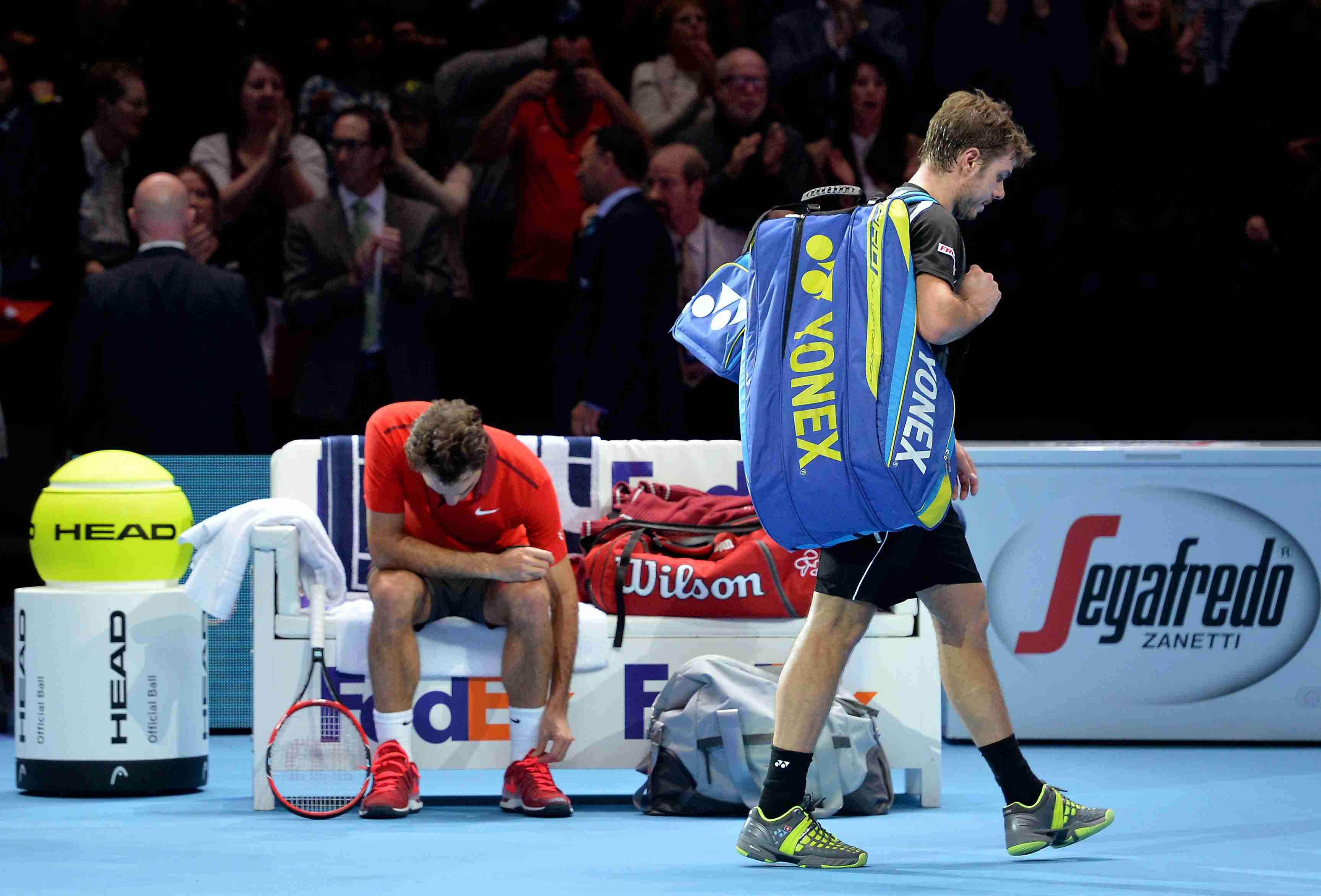 15 ноября. Лондон. Стэн ВАВРИНКА покидает корт после поражения от Роджера ФЕДЕРЕРА. Фото - AFP