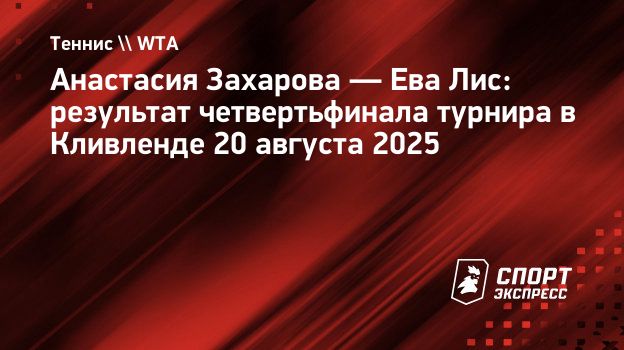 Немецкая теннисистка Ева Лис снялась с четвертьфинального матча против россиянки Анастасии Захаровой на турнире в Кливленде.