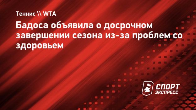 Бадоса объявила о досрочном завершении сезона из-за проблем со здоровьем