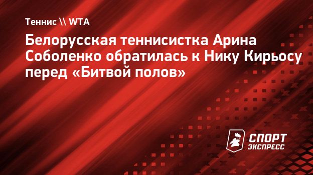 Белорусская теннисистка Арина Соболенко и австралиец Ник Кирьос обменялись комментариями в преддверии выставочного матча «Битва полов».