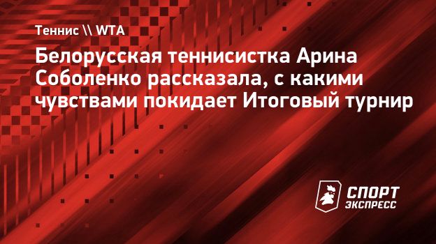 Белорусская теннисистка Арина Соболенко заявила, что не испытывает разочарования после поражения в финале Итогового турнира WTA.