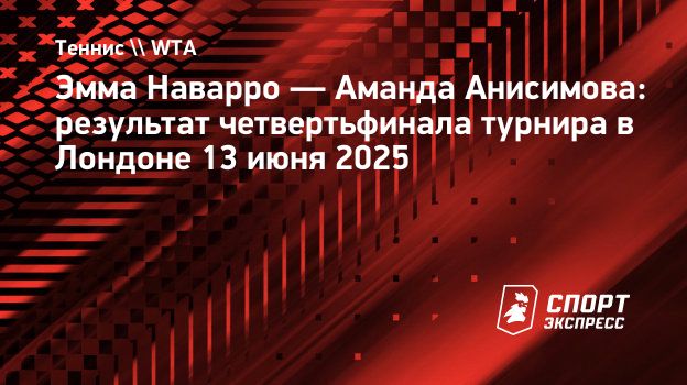 Американская теннисистка Аманда Анисимова победила соотечественницу Эмму Наварро в четвертьфинале турнира в Лондоне.