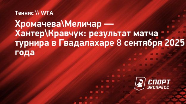 Российская теннисистка Ирина Хромачева и американка Николь Меличар в первом круге парного турнира в Гвадалахаре обыграли австралийку Сторм Хантер и американку Дезайри Кравчук.