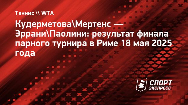 Российская теннисистка Вероника Кудерметова и бельгийка Элисе Мертенс не смогли взять титул в парном разряде на «тысячнике» в Риме.