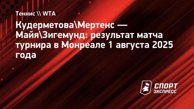 Россиянка Вероника Кудерметова в паре с бельгийкой Элисе Мертенс выиграли у бразильянки Беатрис Хаддад Майя и немки Лаура Зигемунд в первом круге турнира в Монреале в парном разряде — 6:4, 4:6, 10:8.