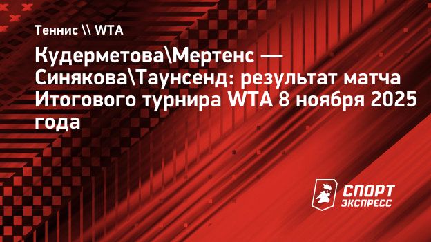 Россиянка Вероника Кудерметова и бельгийка Элисе Мертенс переиграли чешку Катержину Синякову и американку Тэйлор Таунсенд в полуфинале Итогового турнира WTA — 4:6, 7:6 (8:6), 10:6.