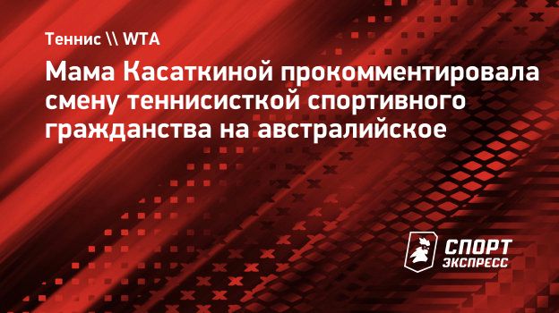 Татьяна Тимковская, мать российской теннисистки Дарьи Касаткиной, прокомментировала решение дочери сменить спортивное гражданство на австралийское.