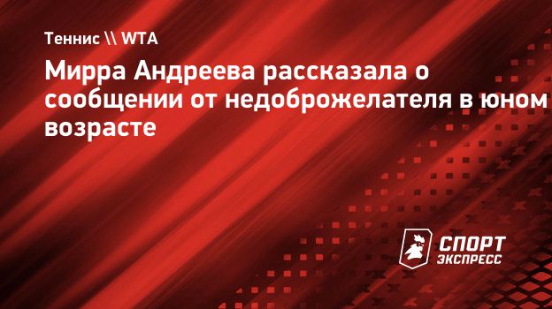 Российская теннисистка Мирра Андреева рассказала, как в юном возрасте получила сообщение от недоброжелателя в соцсетях.