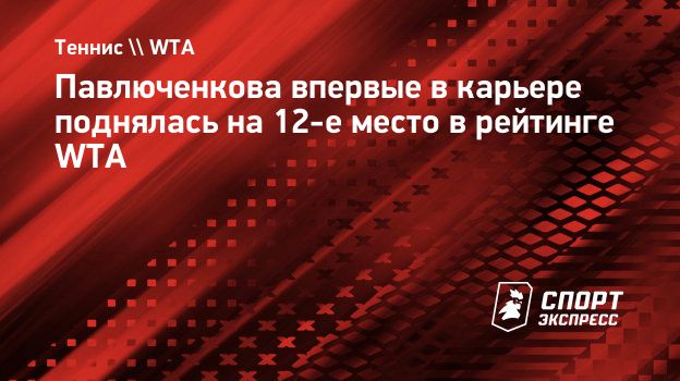 Россиянка Анастасия Павлюченкова впервые в карьере поднялась на 12-е место в рейтинге WTA.
