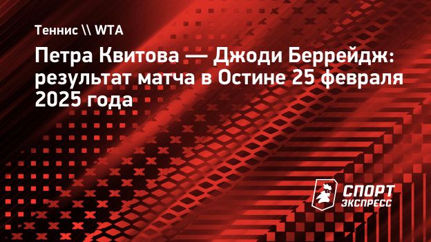 Двукратная победительница Уимблдона проиграла британке Джоди Беррейдж в первом круге турнира в Остине (США) — 3:6, 6:4, 6:4. Матч длился 2 часа 29 минут.