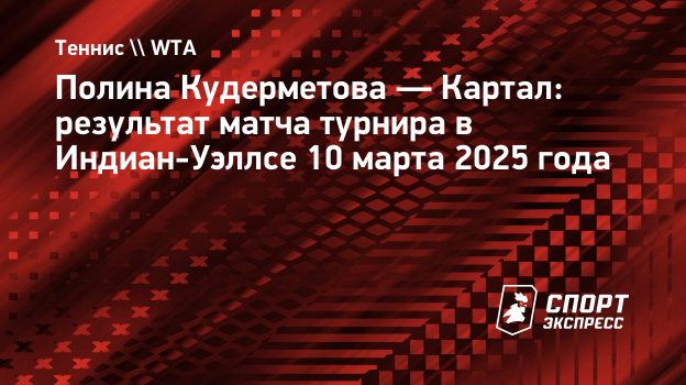 Российская теннисистка Полина Кудерметова в третьем круге турнира в Индиан-Уэллсе уступила британке Сонай Картал со счетом 5:7, 3:6.