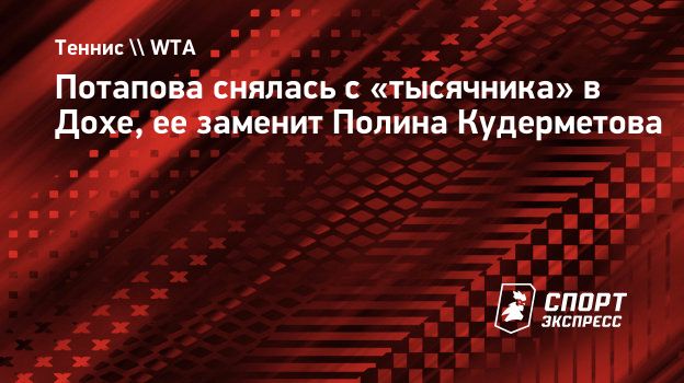 Соревнования пройдут с 9 по 15 февраля. В первом круге «тысячника» в столице Катара 23-летняя Потапова должна была сыграть против соотечественницы Дарьи Касаткиной. Ее заменит еще одна представительница России Полина Кудерметова, уступившая в финале квалификации американке Алисии Паркс.