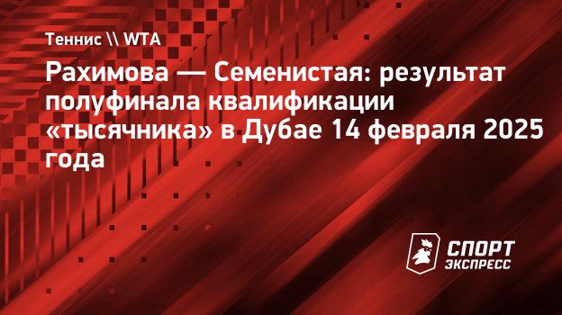 Россиянка Камилла Рахимова пробилась в финал квалификации турнира серии WTA 1000 в Дубае.