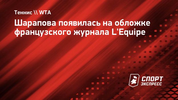 Бывшая российская теннисистка Мария Шарапова попала на обложку нового номера французского журнала L'Equipe.