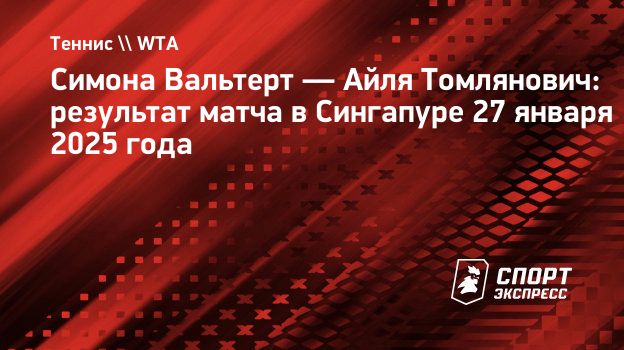 Симона Вальтерт (Швейцария, Q) — Айла Томлянович (Австралия) — 6:2, 6:3