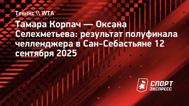 Российская теннисистка Оксана Селехметьева обыграла немку Тамару Корпач в полуфинале «челленджера» в Сан-Себастьяне — 6:2, 6:1.