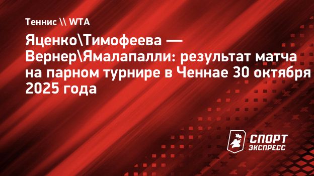 Яценко и Тимофеева вышла в 1/4 финала парного турнира в Ченнае