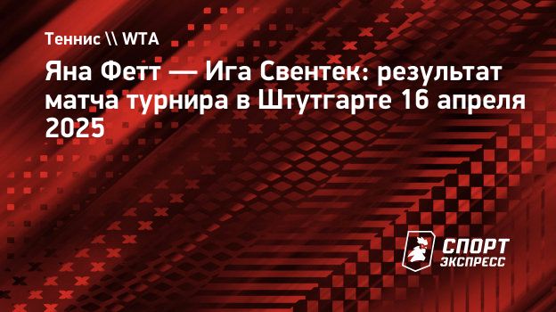 Польская теннисистка Ига Свентек одержала уверенную победу над Яной Фетт из Хорватии во втором круге турнира в Штутгарте — 6:2, 6:2.