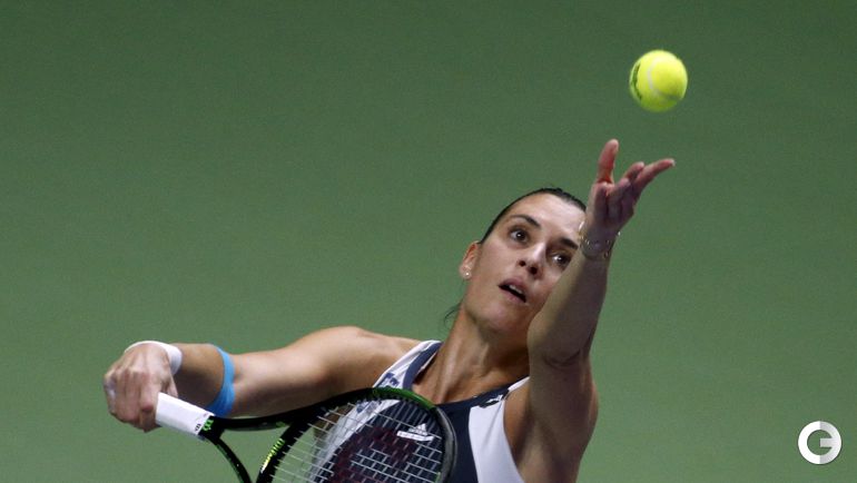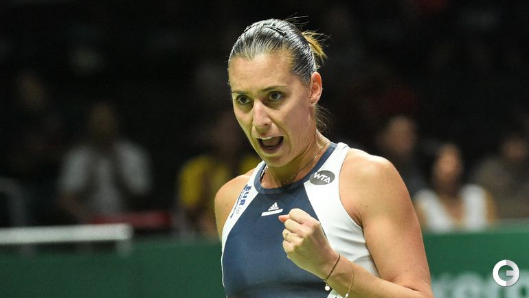Мария Шарапова в матче группового раунда итогового турнира в Сингапуре победила Флавию Пеннетту – 7:5, 6:1. Российская теннисистка одержала три победы в трех встречах и заняла первое место в Красной группе. Со второго места в полуфинал из этого квартета вышла полька Агнешка Радванска. Фото AFP