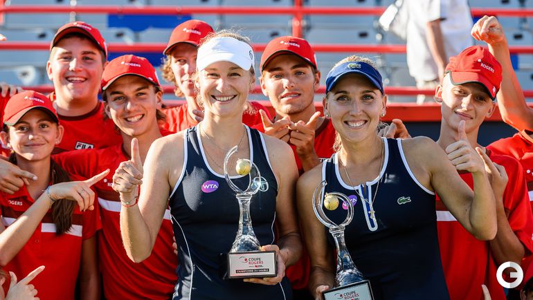 Екатерина Макарова и Елена Веснина стали победительницами турнира парного разряда в Монреале. В финале россиянки в двух партиях обыграли румынок Симону Халеп и Монику Никулеску. Поединок продолжался один час 35 минут.