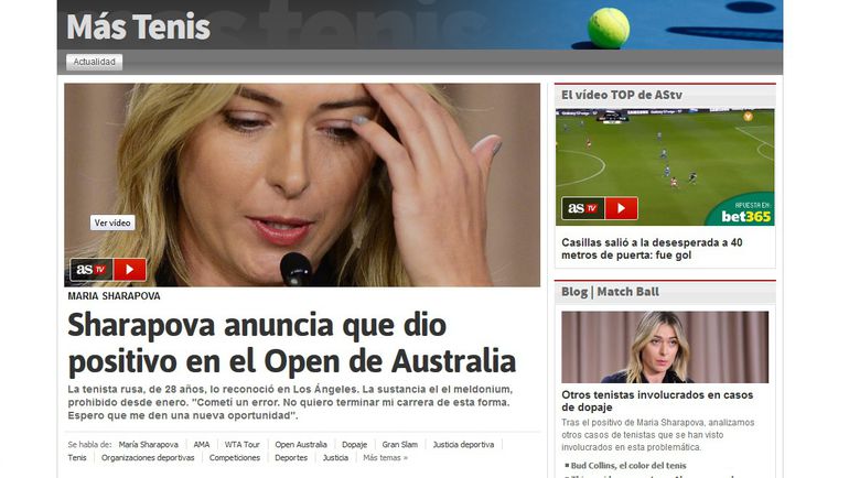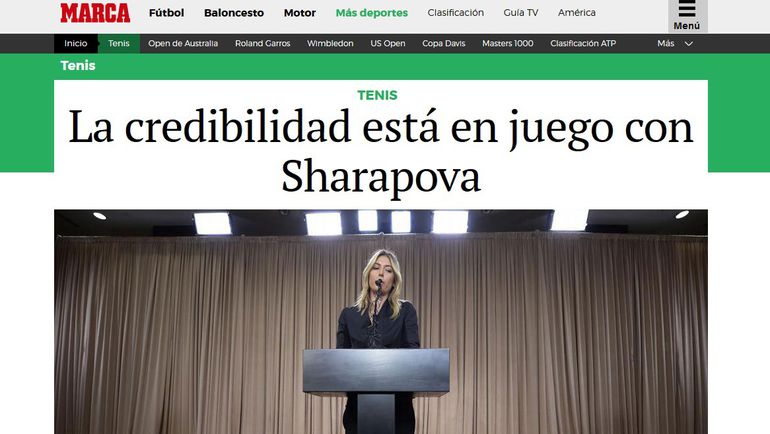 Другое испанское ведущее спортивное издание воздержалось от столь жестких оценок. Ему куда больше интересна реакция на это событие. Стандартный набор: слова экспертов и чиновников, уход спонсоров, рассказ о препарате. Зато имеется даже краткий пересказ биографии Шараповой с веселым подзаголовком "Побег из Чернобыля".