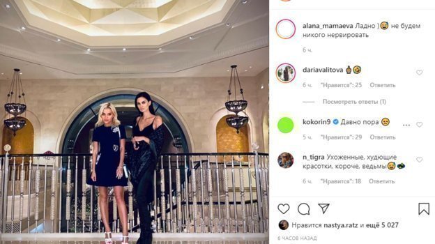 Супруга полузащитника «Ростова» Павла Мамаева Алана выложила новую фотографию в своем Instagram с женой нападающего «Зенита» Александром Кокорина Дарьей Валитовой.