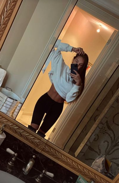 27-летняя спортсменка сделала селфи в зеркале в топе и обтягивающих лосинах.