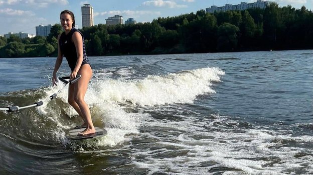 20-летняя россиянка показала подписчикам, как катается на вейксерфе.