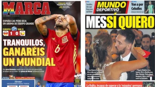 Обложки испанских газет субботним утром. Прокаталонские Sport и Mundo Deportivo знают, что является главной темой для фанатов "Барсы". Marca и AS пишут о чемпионате Европы U21.