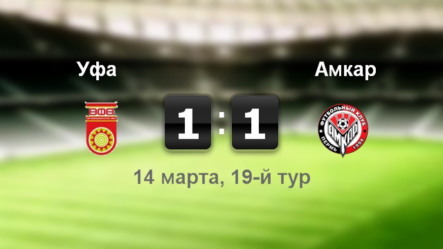 "Амкар" и "Уфа" в матче 19-го тура премьер-лиги сыграли вничью – 1:1. Счет на 72-й минуте открыл нападающий уфимцев Игорь Шевченко. За 5 минут до конца встречи пермяки забили ответный гол – мяч на свой счет записал Александр Прудников. Отметим, что встреча проходила в Саранске.