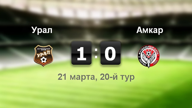 В матче 20-го тура премьер-лиги "Урал" с минимальным счетом обыграл "Амкар". Гол на 78-й минуте забил полузащитник Херсон Асеведо. Встреча проходила в манеже. Команда Александра Тарханова прервала четырехматчевую безвыигрышную серию.