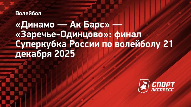 Женская команда «Динамо — Ак Барс» победила «Заречье-Одинцово» в финале Суперкубка России по волейболу — 3-2 (25:19, 25:27, 25:10, 22:25, 15:9). Игра прошла в Калининграде.