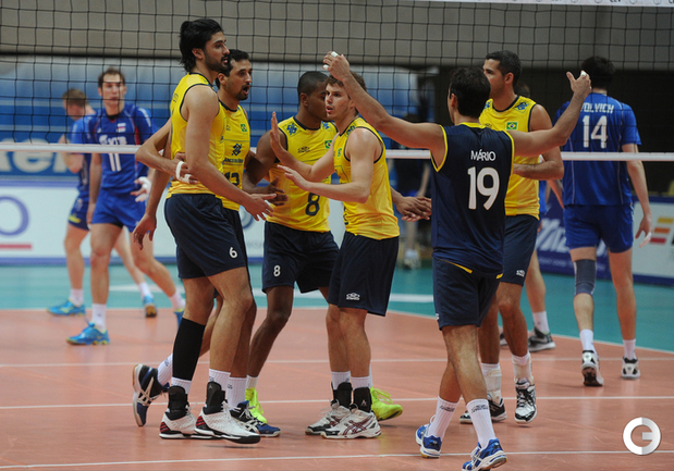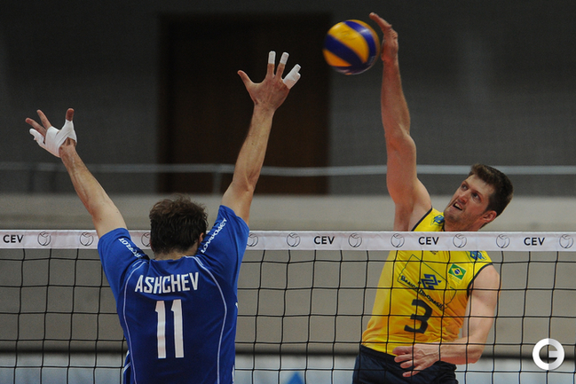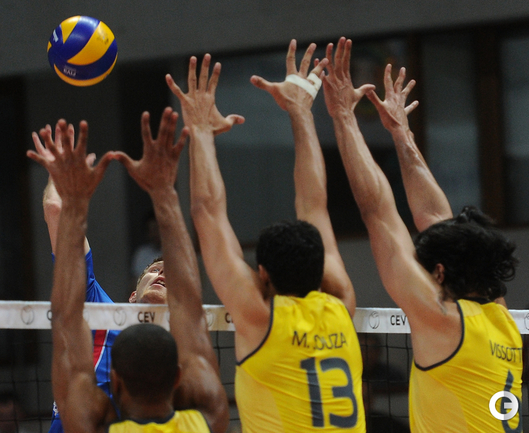 Волейбол. Москва. Товарищеский матч. Россия - Бразилия - 1:3 (20:25, 20:25, 25:19, 17:25). Спустя почти год после Олимпийских игр в Лондоне сборные России и Бразилии встретились вновь. На этот раз бразильцам удалось взять реванш за обидное поражение в финале волейбольного турнира. Фото Антона СЕРГИЕНКО, "СЭ"