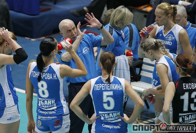 Волейбол. Чемпионат России. Суперлига. Женщины. Плей-офф. Полуфинал. 16 апреля 2010 года. Москва. "Динамо" (Москва) - "Уралочка" (Свердловская область) - 3:0 (25:14, 25:15, 25:15). В отсутствие знаменитого Николая Карполя игрой "Уралочки" руководил Виктор Бардок. Фото - Александр ФЕДОРОВ, "СЭ"
