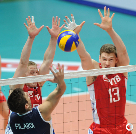 Волейбол. Москва. Товарищеский матч. РОССИЯ – Аргентина – 3:1 (25:21, 36:34, 23:25, 25:19). Сборная России нанесла поражение Аргентине в товарищеском матче в Москве в четырех сетах в преддверии чемпионата мира. Турнир стартует в Польше 30 августа. Фото - Никита Успенский, "СЭ"