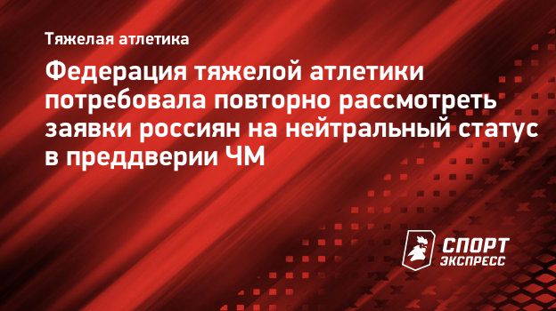 Федерация тяжелой атлетики потребовала повторно рассмотреть заявки россиян на нейтральный статус в преддверии ЧМ