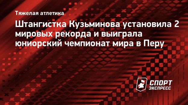 Штангистка Кузьминова установила 2 мировых рекорда и выиграла юниорский чемпионат мира в Перу