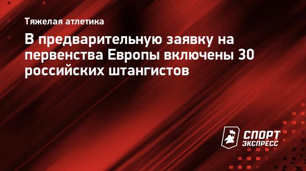 В предварительную заявку на первенства Европы включены 30 российских штангистов