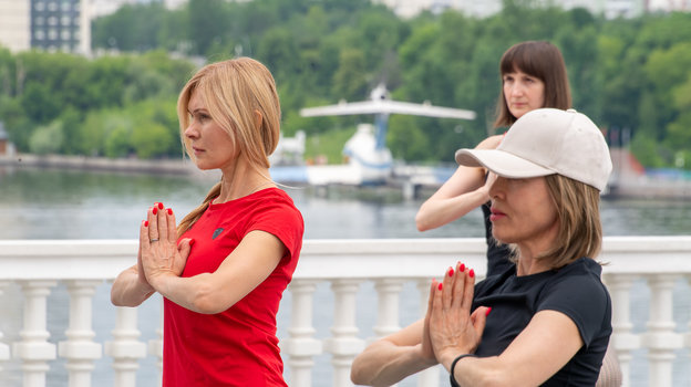 В жаркую погоду лучше выбрать статические нагрузки с паузами для отдыха и восполнения жидкости. Например, йога или неинтенсивные упражнения, которые обычно выполняются при разминке.