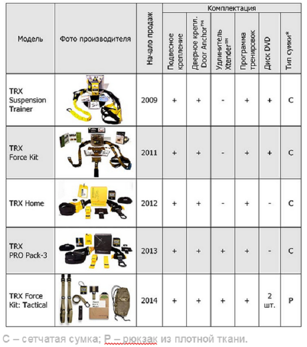 Оригинальные TRX отличаются по уровню подготовки спортсмена и бывают нескольких видов:
