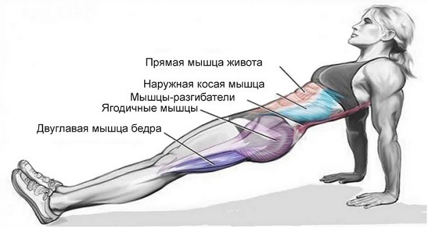 — вся группа мышц живота (брюшной, боковой, нижний пресс);